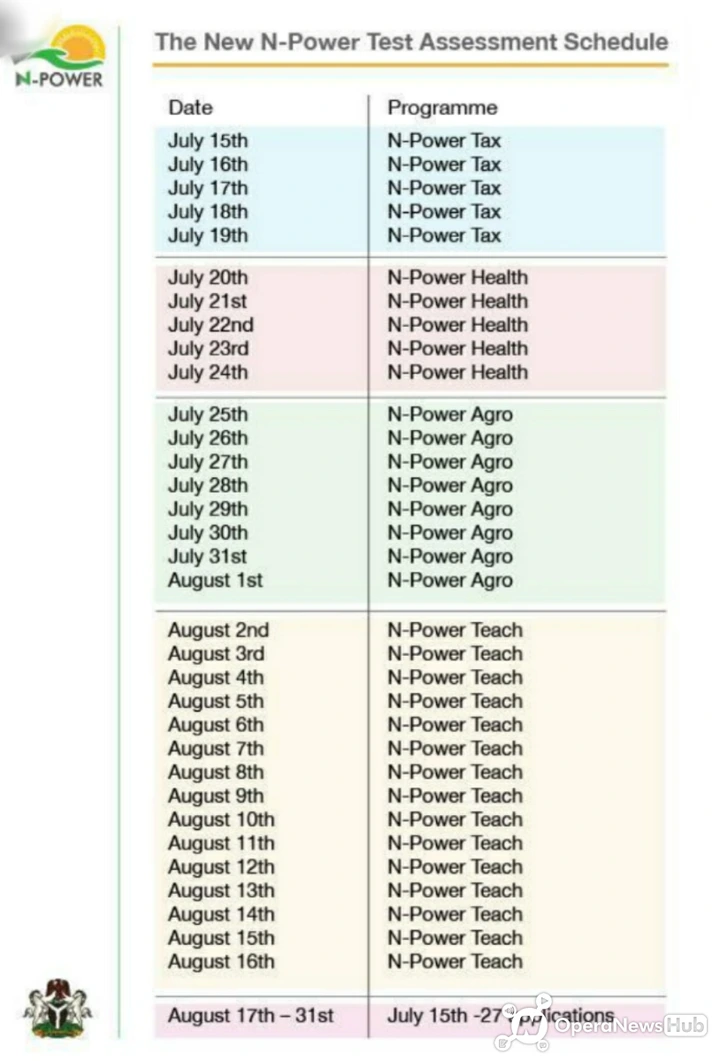 The Nigerian Federal government initiated Npower scheme has released the test timetable for applicants.